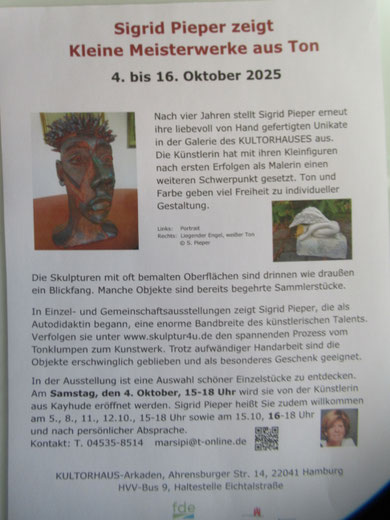 Ich werde in diesem Jahr in den KULTORHAUS-Arkaden in Hamburg-Wandsbek am Eichtalpark ausstellen.