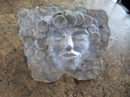 Glasuren versehen und erneut bei 1020 Grad gebrannt. Eine eindrucksvolle Maske, die sowohl an die Wand gehangen werden kann als auch in einem Aufsteller ihren Platz finden kann. Sie besticht