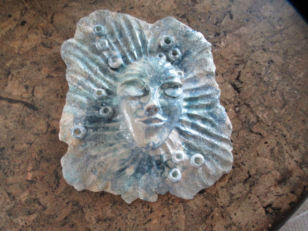 Diese Skulptur wurde von mir entworfen und von Hand aus weißem Ton in Aufbautechnik gearbeitet (auch die Muscheln sind von Hand gearbeitet) - dann wurde die